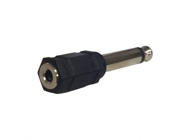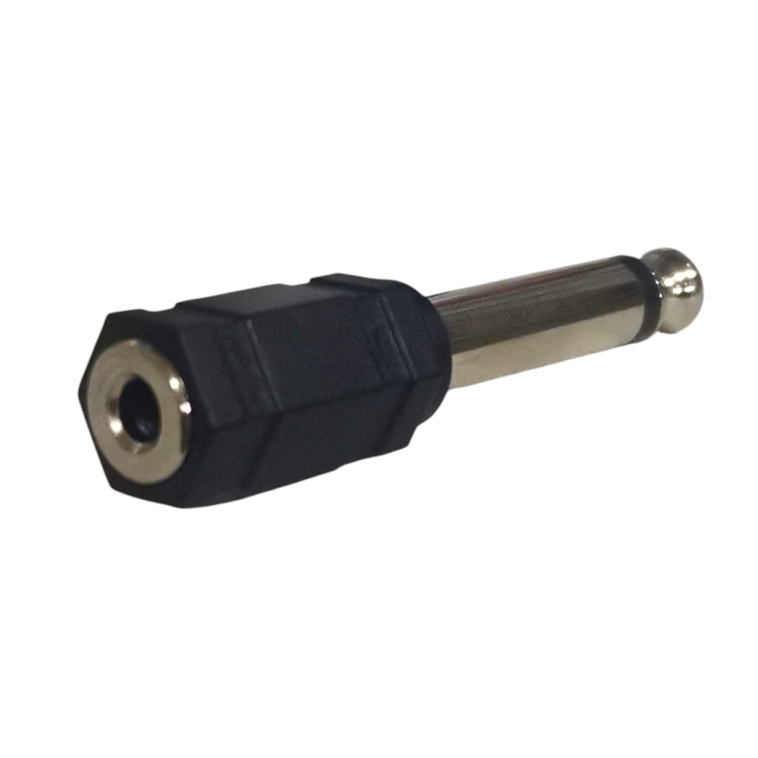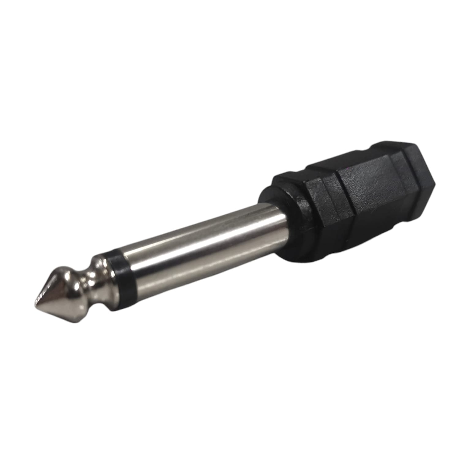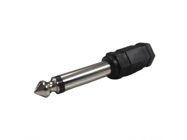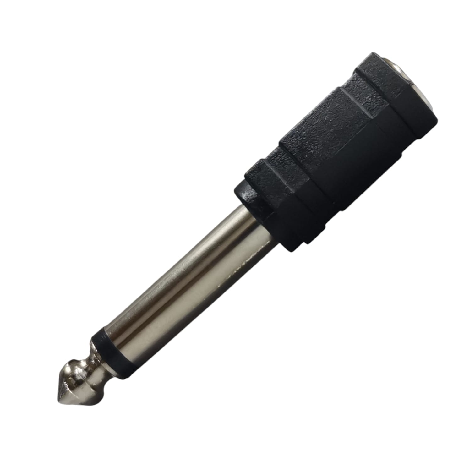 Conector adaptador diseñado para convertir una salida o entrada JACK de 3.5 mm a formato PLUG 1/4" (6.35 mm) mono.