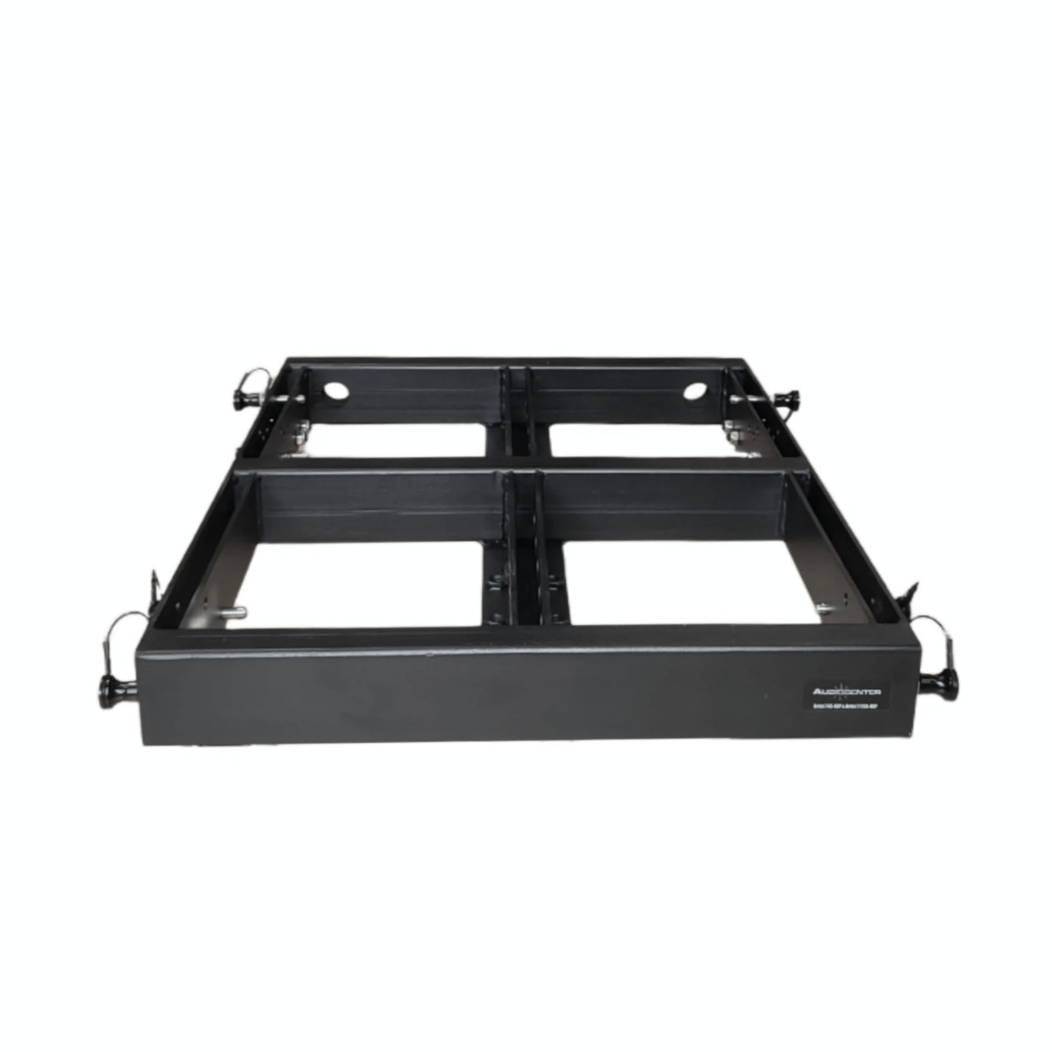 Estructura de suspensión profesional diseñada para los altavoces Audiocenter Butterfly, que permite un colgado seguro, estable y preciso del sistema en instalaciones fijas o eventos, optimizando la cobertura sonora mediante configuración aérea.