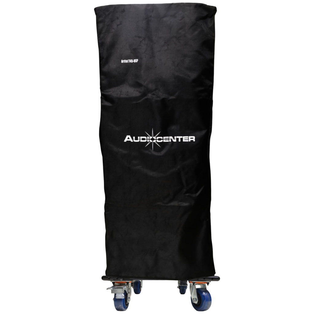 La funda está diseñada específicamente para la geometría y dimensiones de los altavoces T45-DSP montados sobre la base dolly.