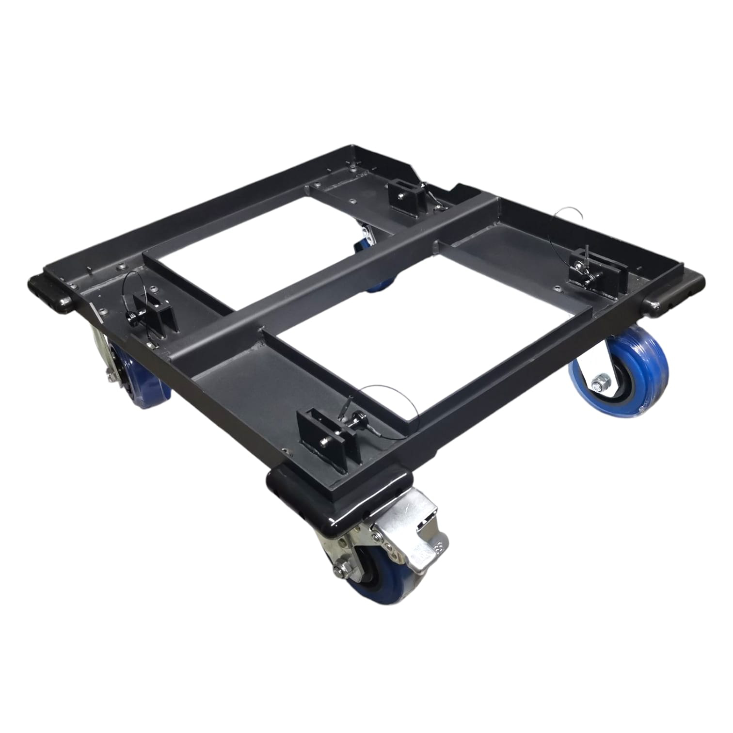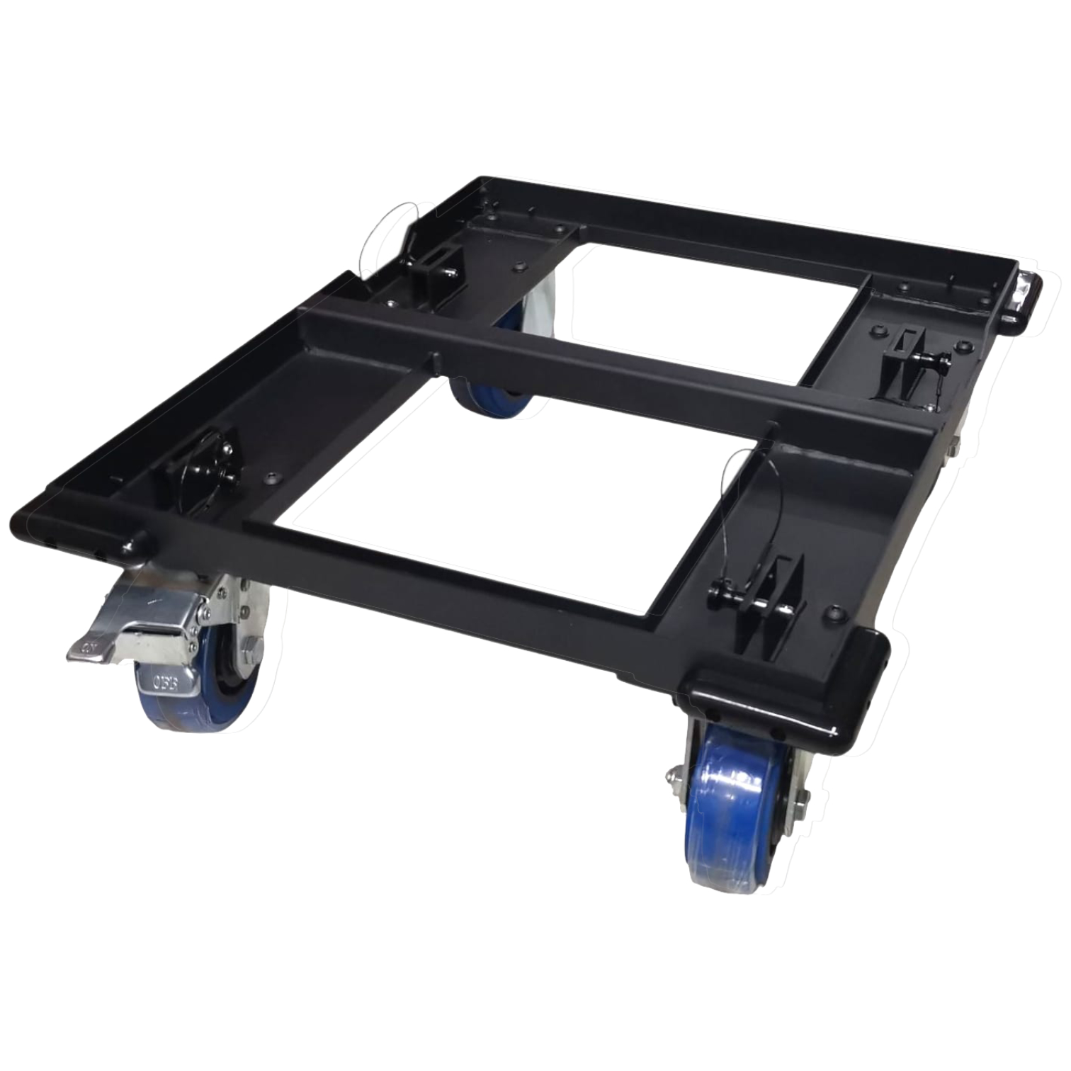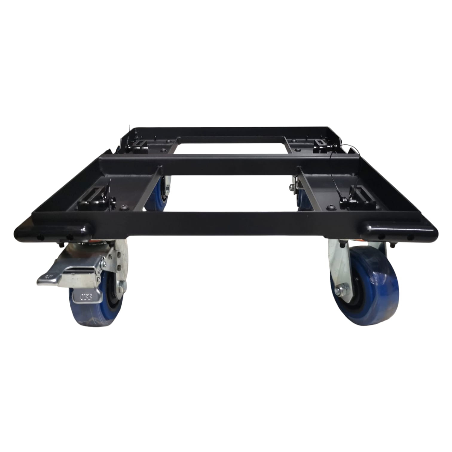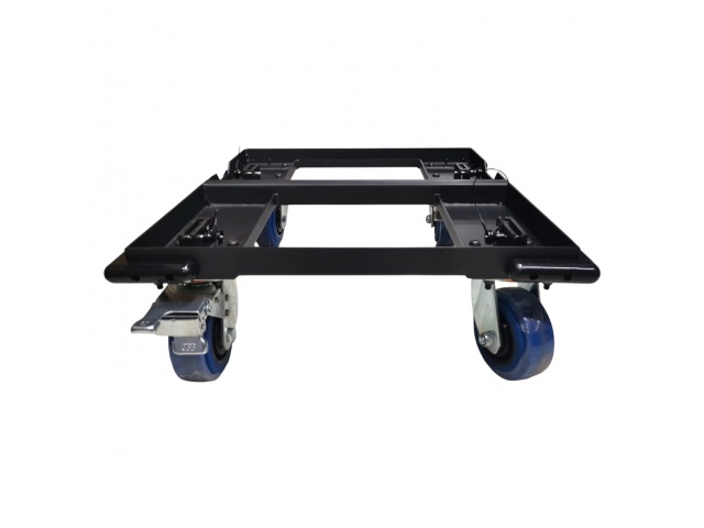 Plataforma resistente para facilitar el movimiento de múltiples altavoces T45-DSP; incluye set de ruedas removibles y una funda protectora para transporte seguro, protección contra polvo y golpes ligeros durante almacenamiento o traslado.