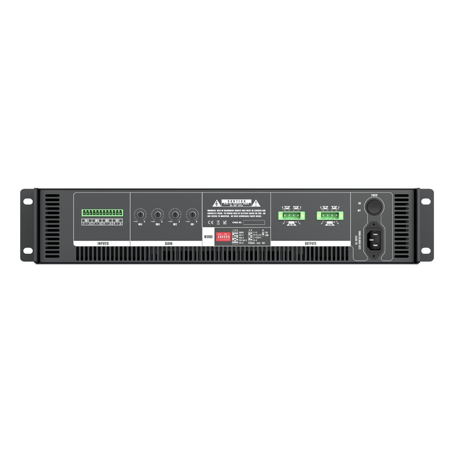 Modos de trabajo: Estéreo, paralelo, puente, 70V / 100V.
