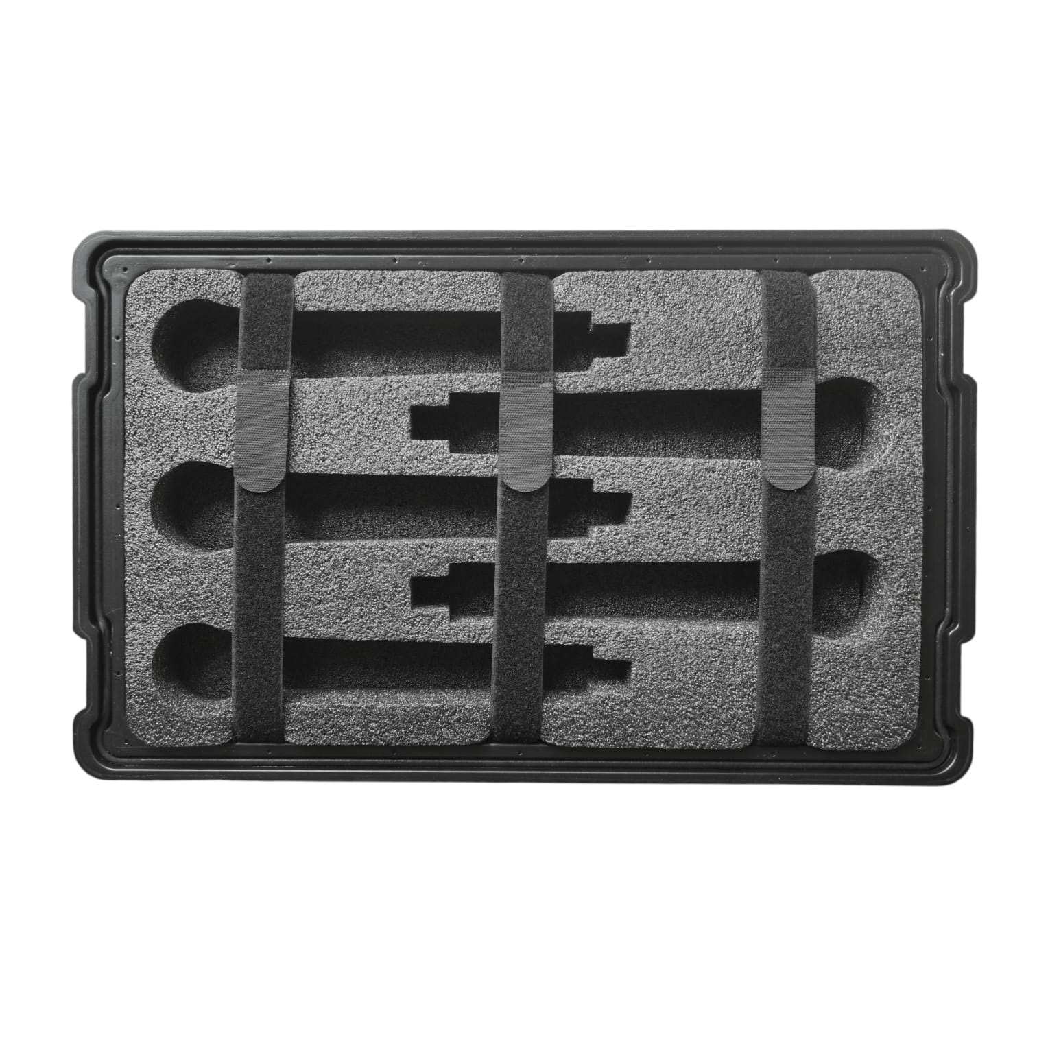 Tapas: Delantera y trasera desmontables con lugar para guardar micrófonos y accesorios