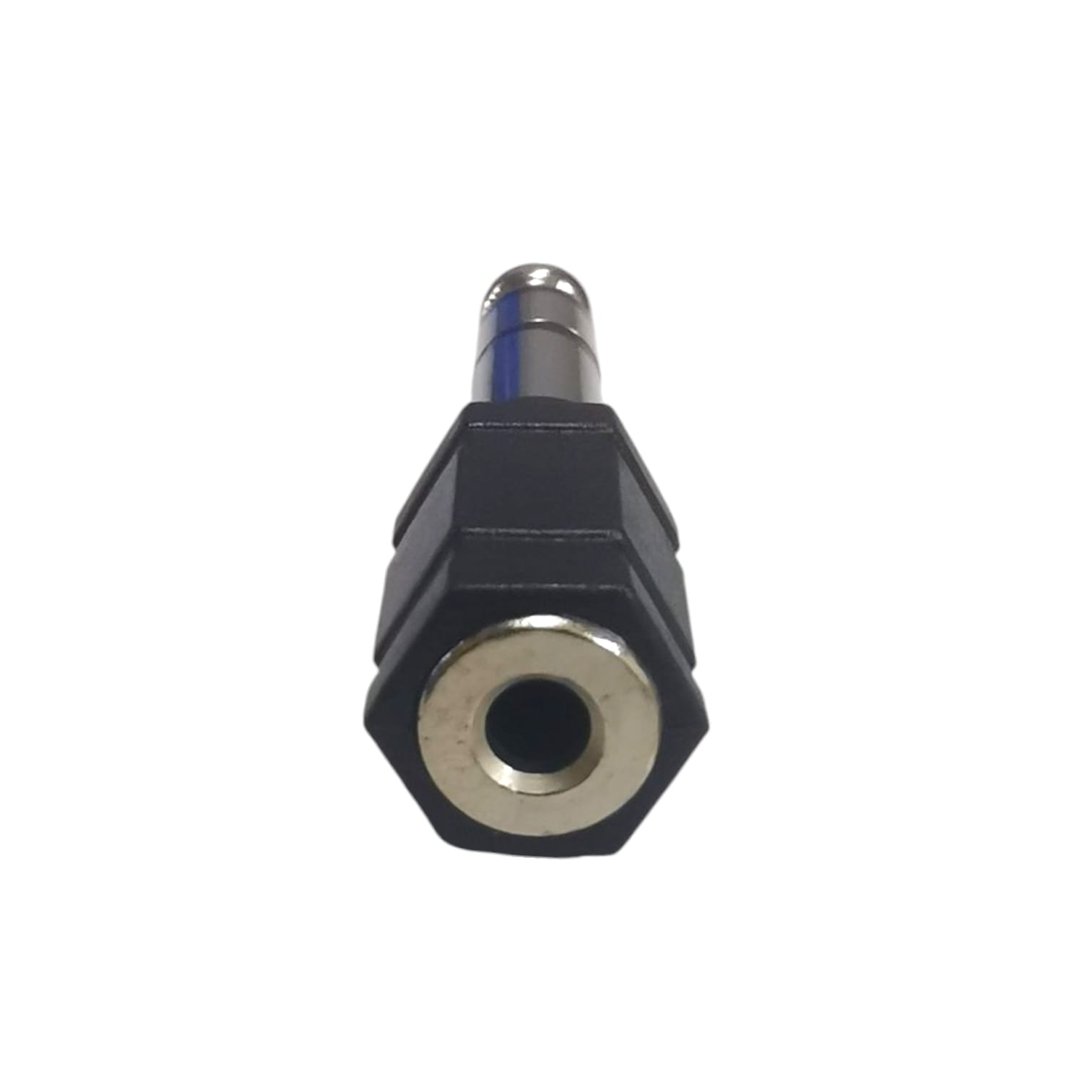 Conector adaptador diseñado para convertir una salida o entrada JACK de 3.5 mm a formato PLUG 1/4" (6.35 mm) stereo.