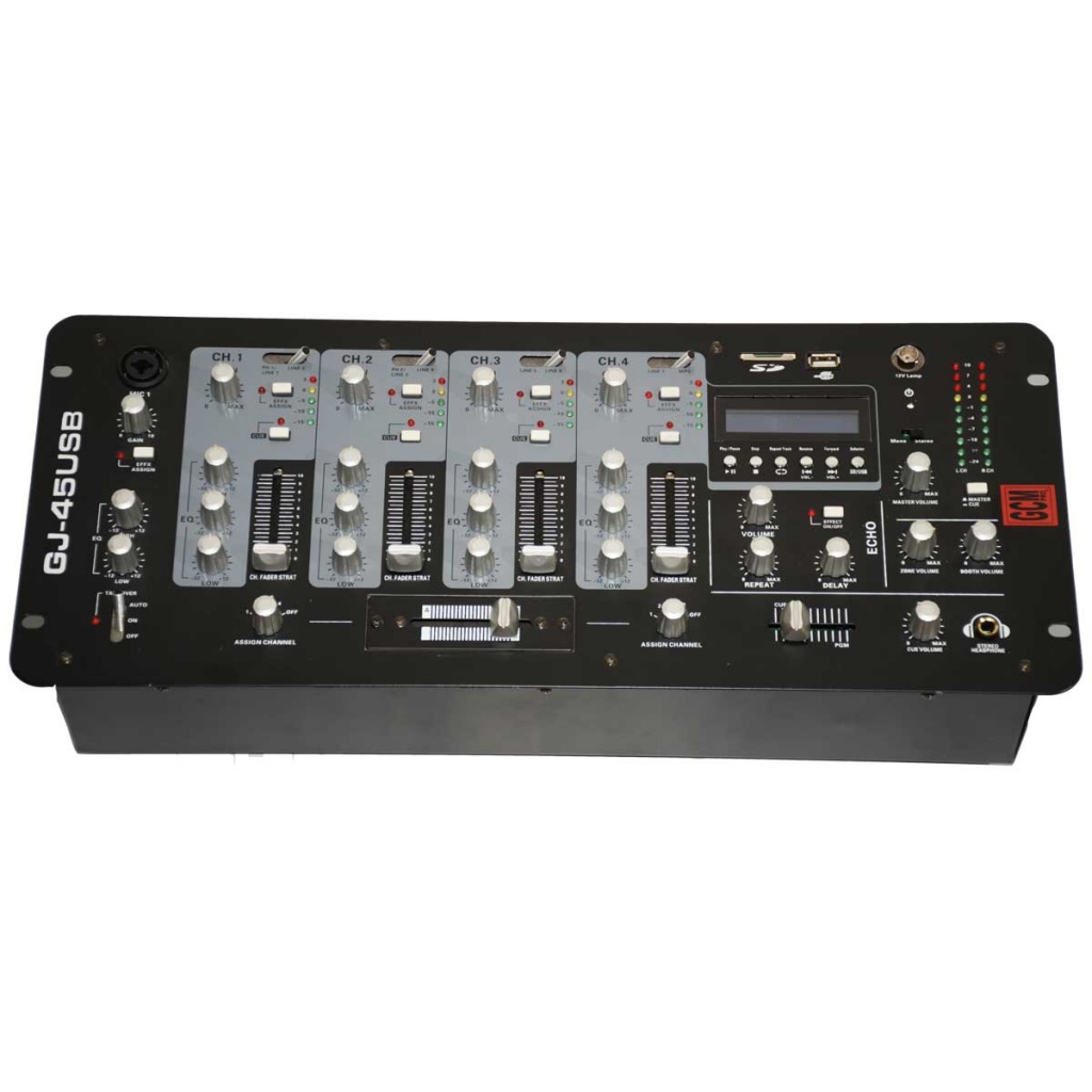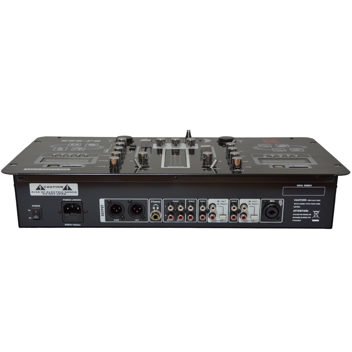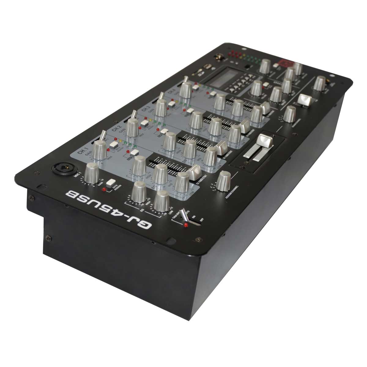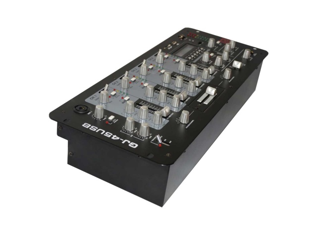 * Mezclador de DJ con 4 canales estéreo + USB + ranura para tarjetas SD y pantalla LCD