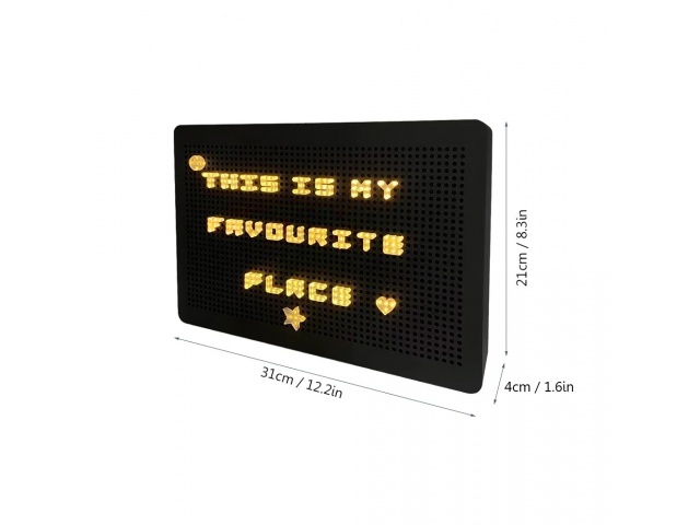 Alimentación: Cable USB o 6 pilas AA (no incluidas). Tamaño del artículo: 31 x 21 x 4 cm (12,2 x 8,3 x 1,6 pulgadas). Tamaño del paquete: 32 x 23,5 x 7,5 cm (12,6 x 9,3 x 3 pulgadas). Peso del paquete: 710 g (1,57 lb). Contenido del paquete: 1 caja de luz, 158 accesorios (letras, números y símbolos). 1 cable USB. Tamaño A4